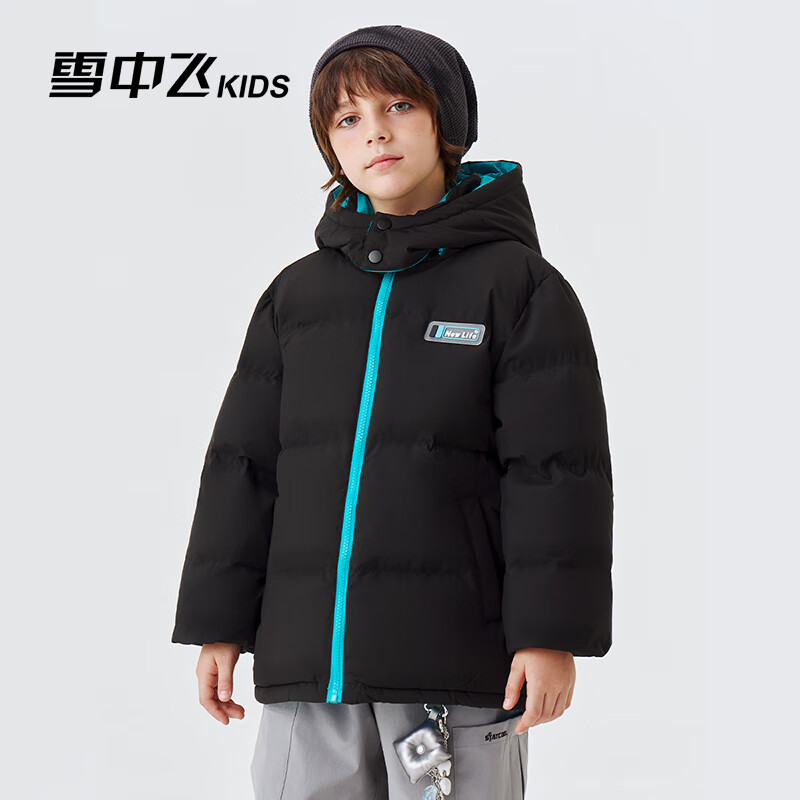 包邮 雪中飞童装儿童羽绒服男童冬季新款女童中大童装面包羽绒服 黑色 170